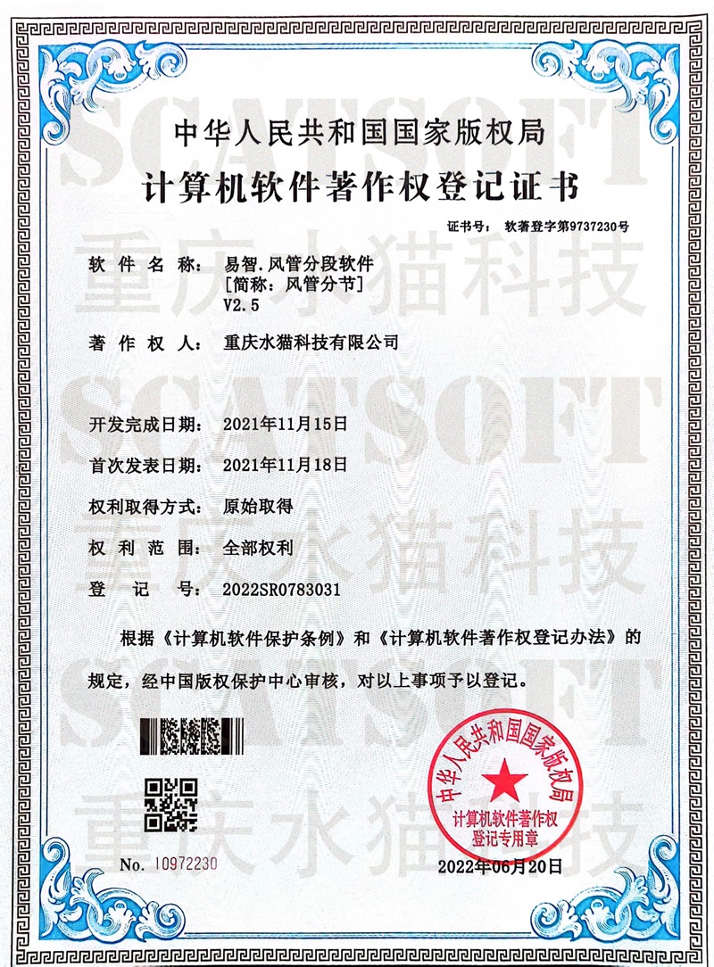 易智风管分段(ScatADS)著作权证书